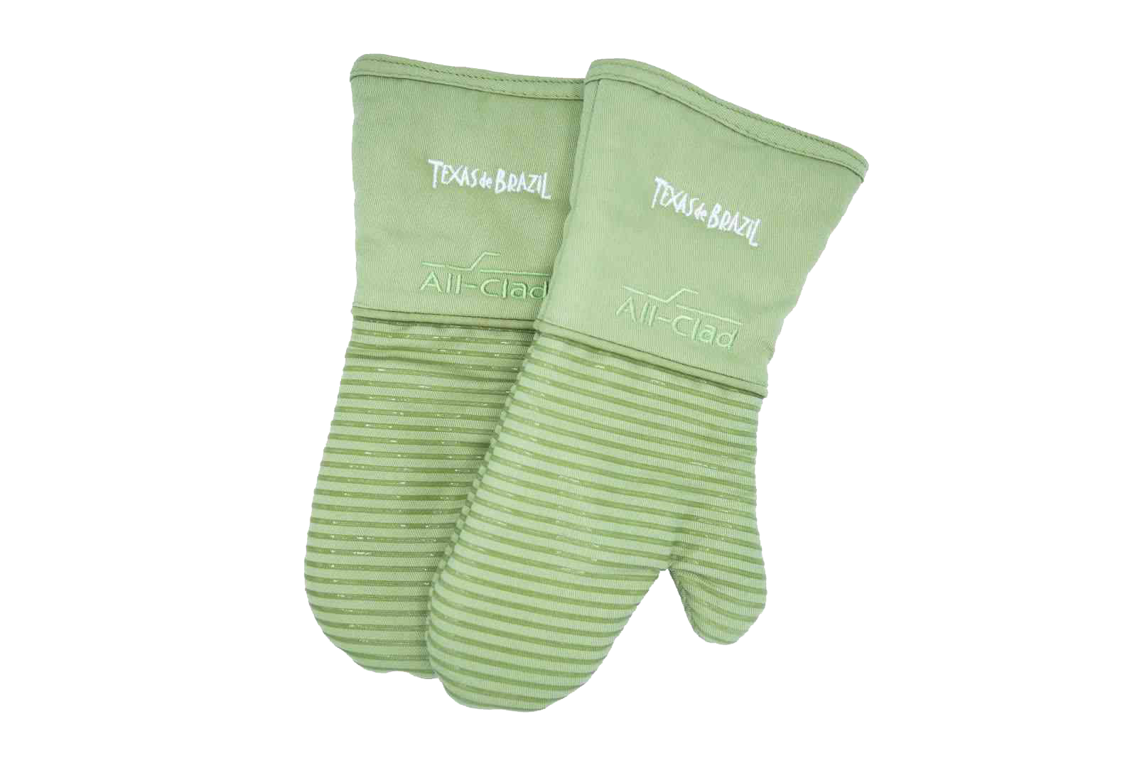 Branded Texas de Brazil Oven Mitts All-Clad Silicone Mitts Non-Slip / Easy Grip Heavy Cotton Twill is Stain Resistant Heat Resistant up to 500 Degrees 7″ W x 14″ L (each mitt)