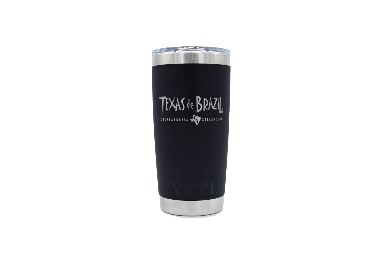 Branded Texas de Brazil Rambler Tumblers Yeti 20 oz tumbler made from stainless steel Double-wall vacuum insulation to keep liquids hot or cold Tumbler and MagSlider lids are dishwasher-safe